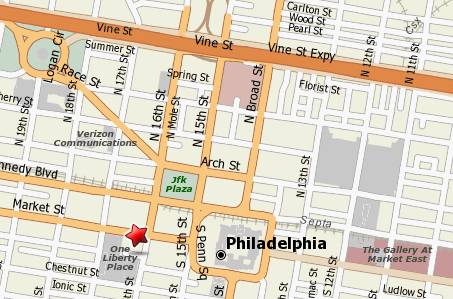 Map: http://www.mapquest.com/maps?city=Philadelphia&state=PA&address=1600+Market+St&zipcode=19103-7240&country=US&latitude=39.952833&longitude=-75.167288&geocode=ADDRESS